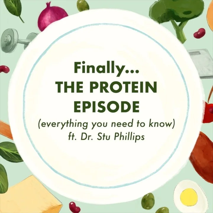 This episode is dedicated to the sexiest macronutrient of the time: PROTEIN. We talk to the king of protein research himself, Professor Stu Phillips from McMaster University about all the most common questions we get about protein. How much do you need? Should you spread it out throughout the day? Do you need a protein supplement? Is animal or vegan protein better? What's the deal with collagen, and more. Find out how a higher protein diet impacts your overall health, your weight, and your metabolism. (Plus, how to not waste your money on things that don't work.)